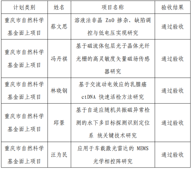 根据重庆市科技局和重庆大学关于重庆市项目结题验收的要求,按照光电工程学院评审专家意见,现将结果公示如下: