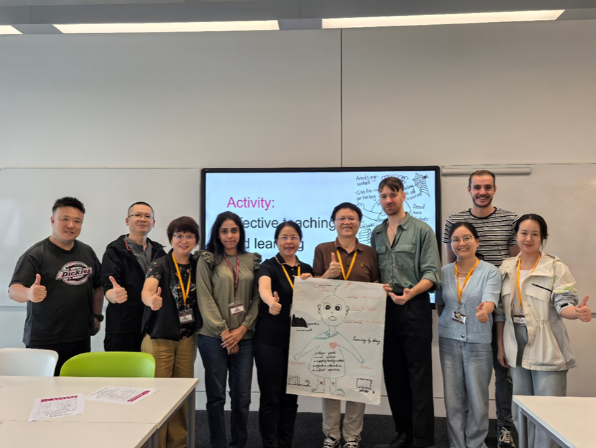 在英国研修期间,韦玮教授积极参与了多项学术活动,包括主题讲座、互动工作坊和实地研学。主题讲座聚焦“AI与高等教育”“GROW模型与课程设计”“终身学习与实践策略”“师生幸福感提升”等前沿教育议题,为参训教师提供了理论支持与思维启发。互动工作坊环节,参训教师就“与AI合作的经验与方法”“教学反馈的必要与策略”等实操性内容,与牛津大学教育专家及同行展开了深入讨论。