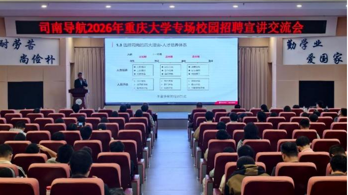 报告会后,现场举行了司南导航2026年重庆大学专场校园招聘宣讲交流会,司南导航副总裁翟传润主持交流会。