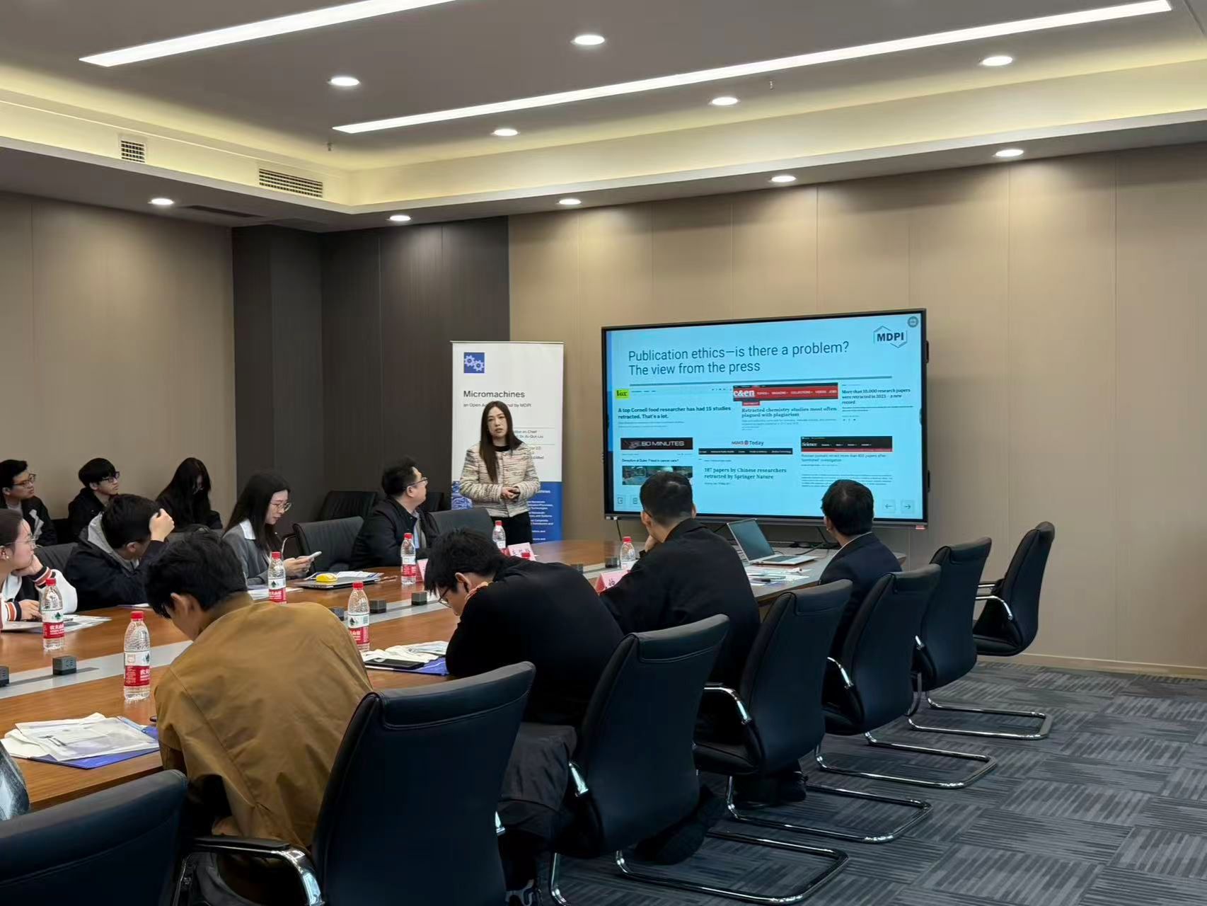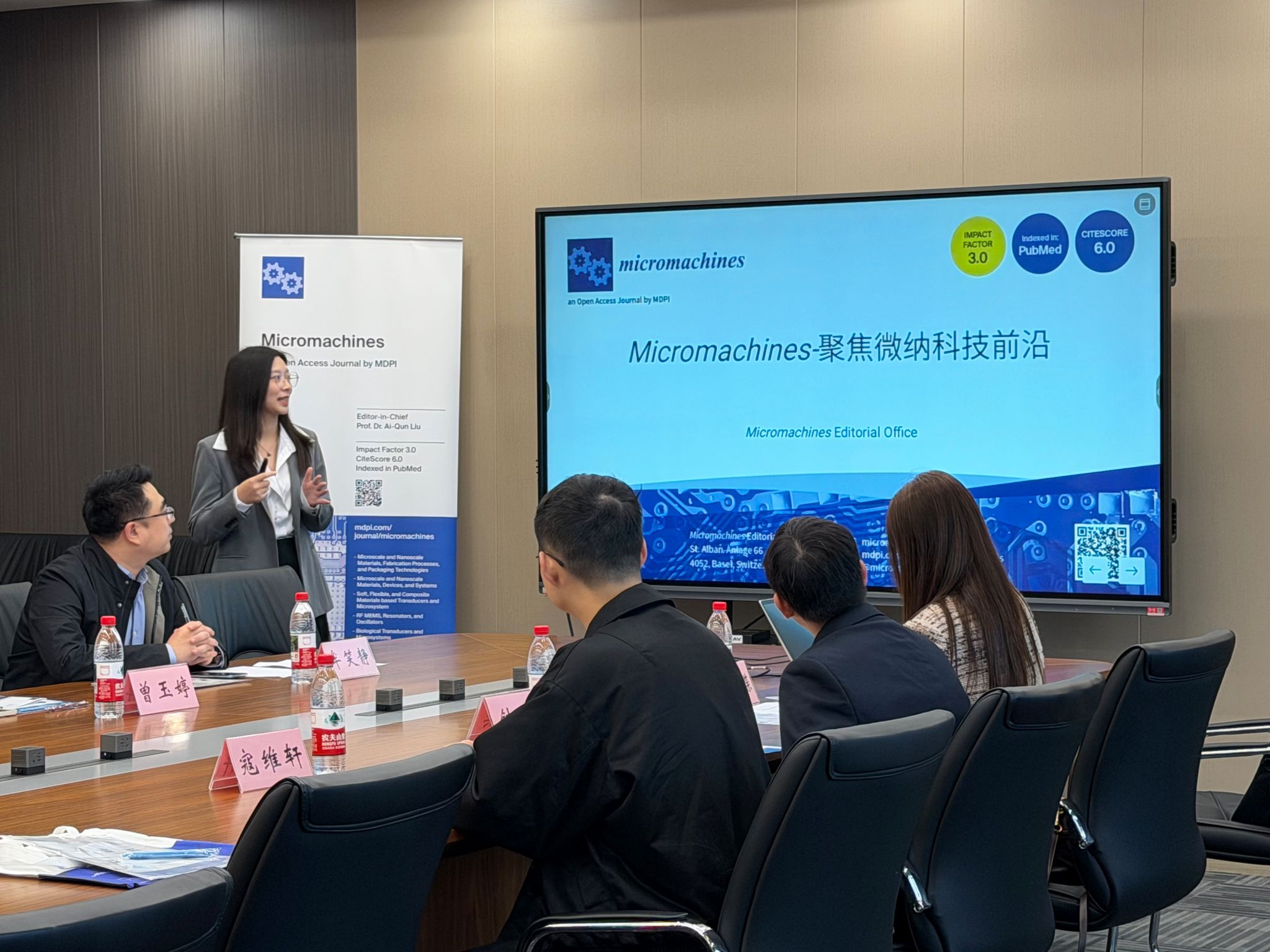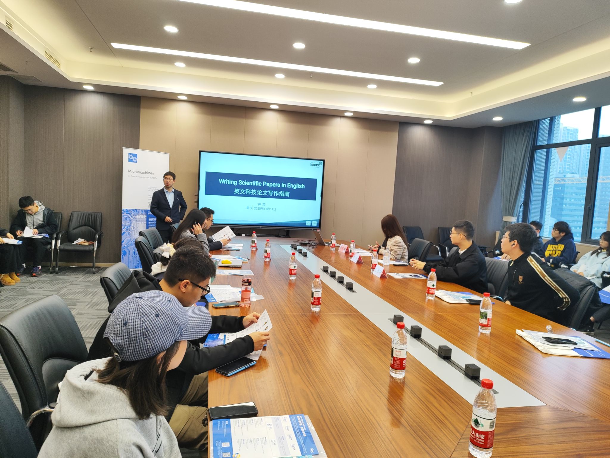 11月11日,由重庆大学光电工程学院与Micromachines期刊联合举办的作者培训会在虎溪校园顺利举行。期刊出版人胡梦蝶、出版专员钟奕、责任编辑曾玉婷等一行六人应邀参会,光电学院副院长牟笑静主持并致欢迎辞,学院40余名师生参会。