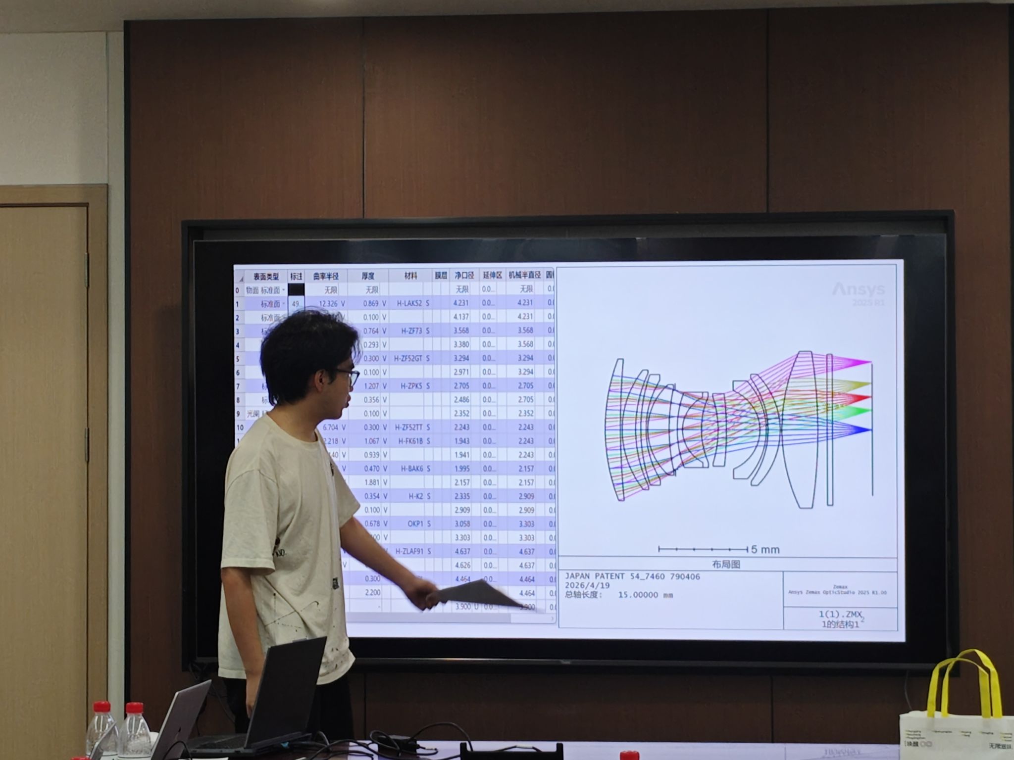 在光学设计赛道评审环节,参赛团队围绕微光夜视观察物镜设计、AR眼镜拍摄镜头设计两大赛题,系统汇报设计指标达成、光学系统优化、公差分析、工艺可行性等核心内容。评委对照全国赛要求,从设计方案、工程实现、性能参数等方面逐一审核,给出针对性改进建议。