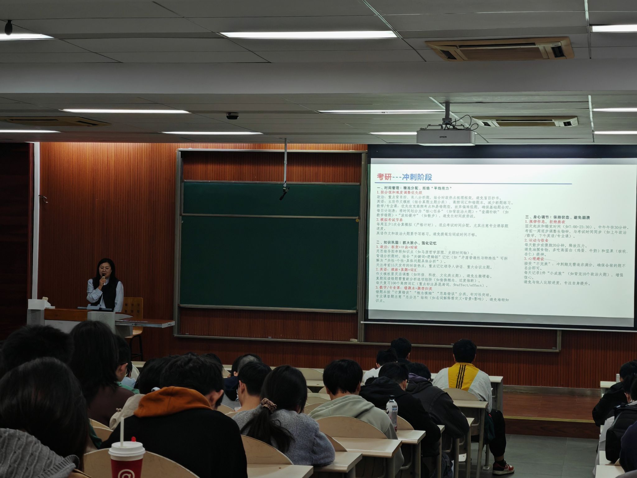 随后,陈涛从保研、考研、考公、就业四个重要方向出发,为同学们逐一梳理了各个路径的关键节点与注意事项。保研后的学习科研规划、考研的复习冲刺、考公的岗位选择及准备、就业的求职技巧等,都进行了细致入微的讲解,让同学们对不同发展方向有了更明确的规划。结合“安全教育月”的要求,陈涛针对消防安全、国家保密安全、网络诈骗及校园交通安全等方面进行了重点提醒。特别是随着双十一购物节的临近,她特别强调同学们要提高警惕,谨防网络诈骗,同时合理规划开支,避免盲目消费。