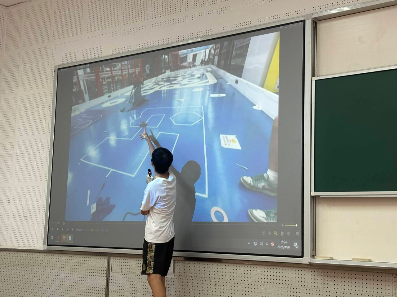 在竞赛经验分享环节,23级辅导员蒋老师邀请本年级智能车国家级一等奖获得者代中原同学现身说法,从备赛心态、技术策略到团队协作,毫无保留地分享了斩获国一的成长历程。“智能车竞赛是‘痛并快乐着’的修行,它逼你把课本知识变成解决问题的能力。”代中原的真诚分享,让在场同学对竞赛的价值有了更深体悟。随后,24级智能车协会负责人还通过精彩赛事视频,生动介绍了智能车各赛道的技术亮点与竞技魅力。