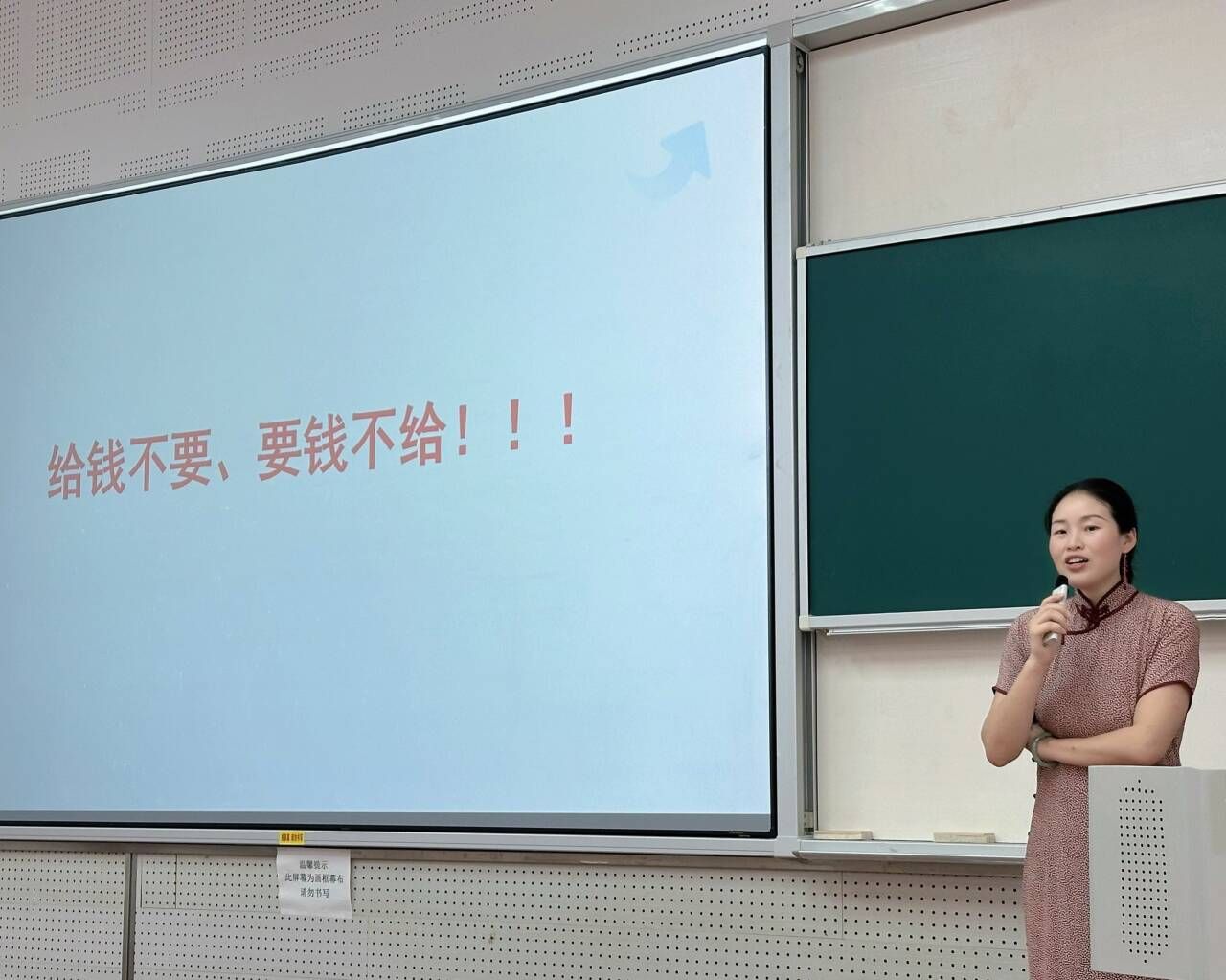 最后23级辅导员蒋晓红老师围绕年级发展关键事项逐一部署,先是以“给钱不要、要钱不给”的直白警示结合真实案例筑牢电信反诈防线;紧接着针对中秋国庆假期,明确请假规范,从消防、食品、交通到归寝管理全方位强调双节安全注意事项;同时深入剖析上学期年级成绩,结合考研、就业数据,针对“升学意愿较高”的趋势为同学们的学业规划提供精准参考;此外还重点强调医保参保的重要性,号召同学们按时参保以守护自身健康权益。