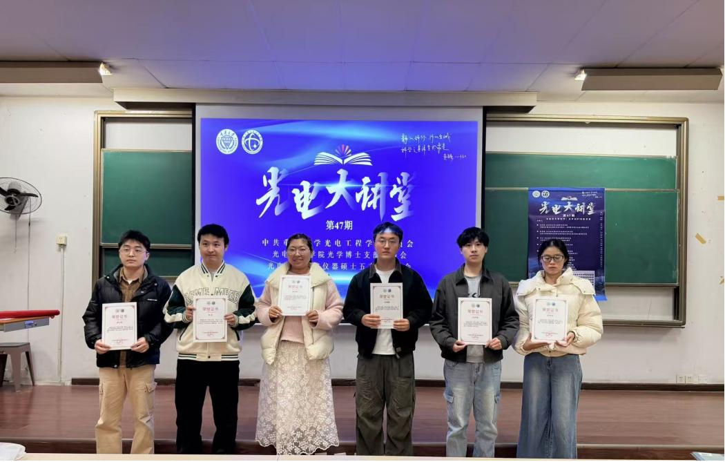 讲座上,同学们通过提问等方式与讲者进行深入的交流。活动最后主讲人合影留念,为第47期光电大讲堂画上圆满句号。此次活动搭建起跨学科交流桥梁,激发听众科研热情。